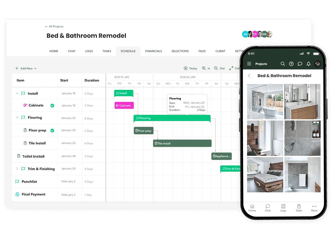 A key part of our commitment to transparency and communication is our use of a dedicated smartphone project management app throughout every renovation. This platform allows us to share daily job logs, progress photos, schedules, and important updates in real time, giving homeowners clear visibility into the work as it unfolds.