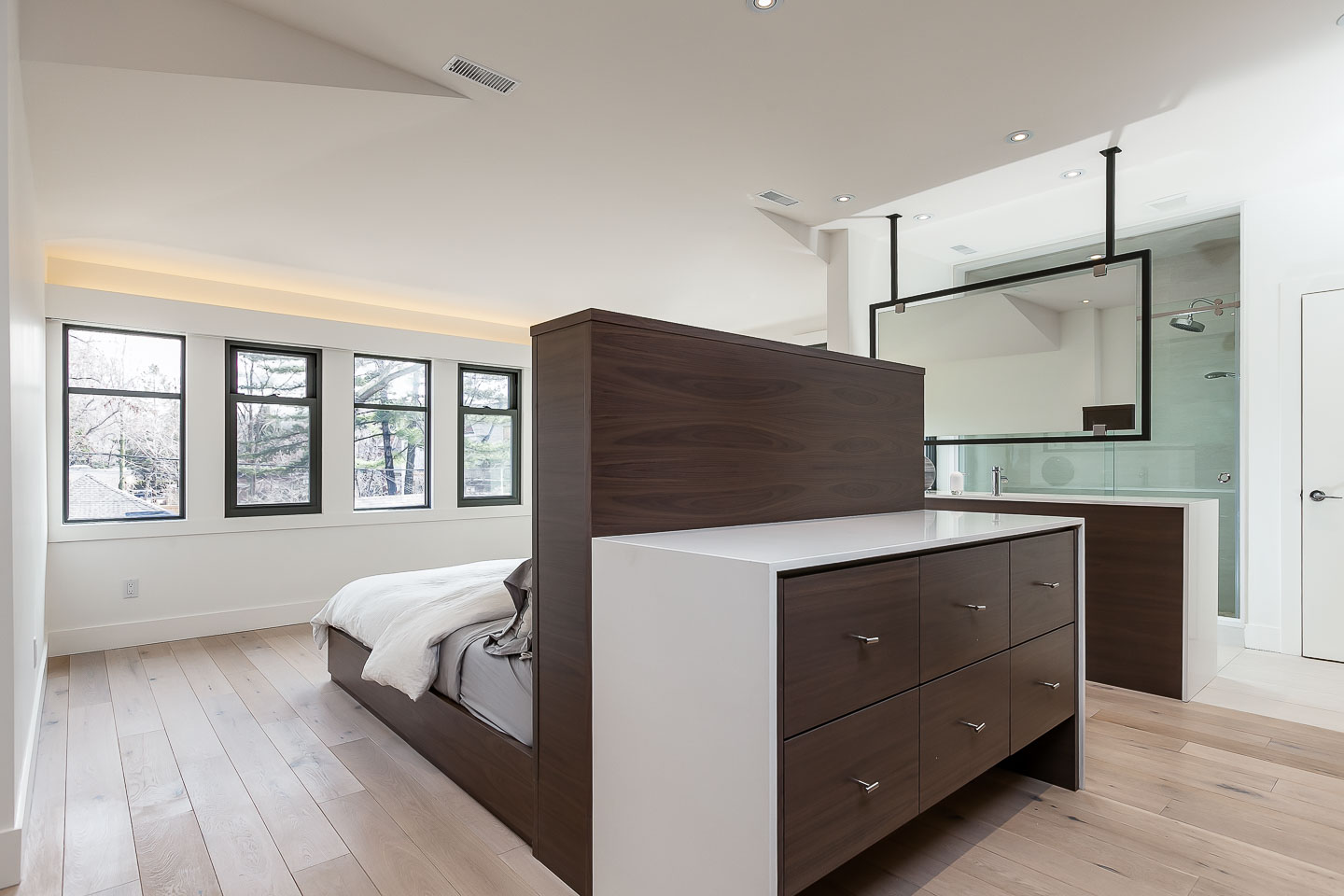A principal suite should feel spacious, connected, and intuitive. We help you reconfigure floor plans to improve flow between the bedroom, ensuite, and closet areas. This may include removing walls, optimizing natural light, or creating more intentional transitions between spaces.